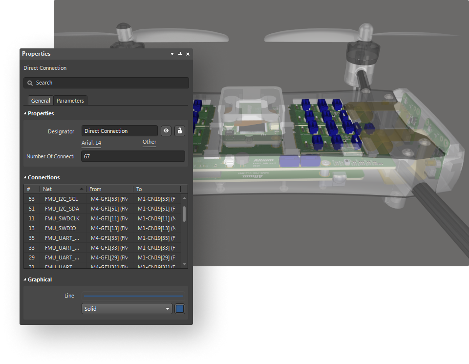 Create physical connections between PCBs using flexible mating functionality for absolute precision on all your designs. Simply select the objects that need to be connected and manage all of your assembly matings in one convenient location.