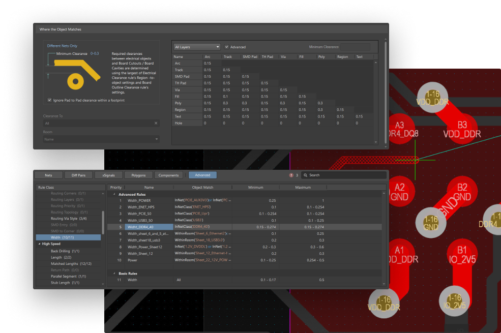 As your product's demands increase, so does the need for a powerful routing engine that can handle complex routing topologies. With our rules-based routing engine, you can easily meet these demands and achieve the results you need. Every aspect of your design is controlled with an intuitive constraints editor that allows you to easily make edits as you work.