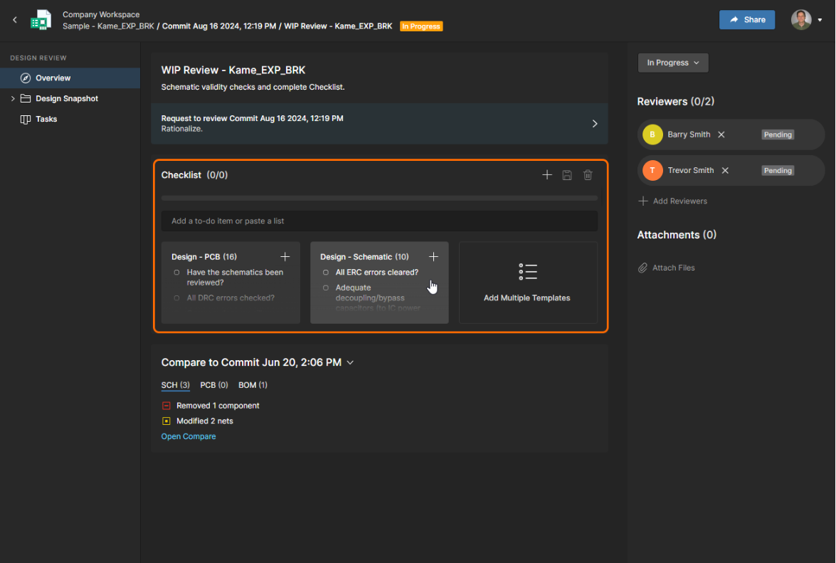 Altium Develop comes with suggested design review templates and checklists, but every team and every project is different. Your team will learn how best to structure a design review—based on the purpose and participants