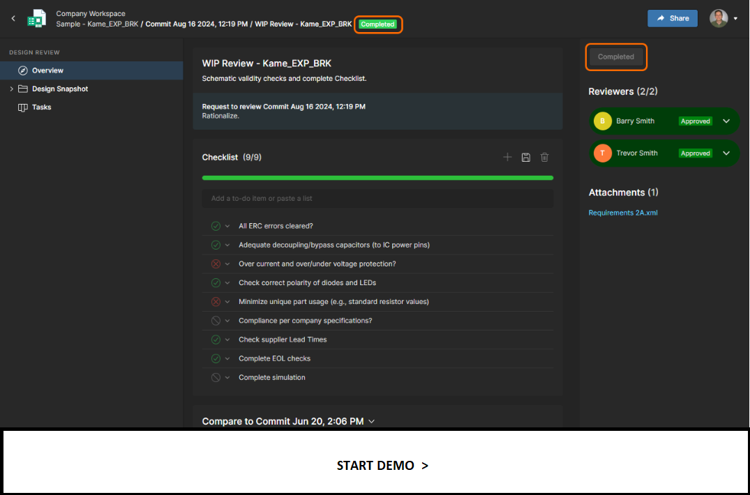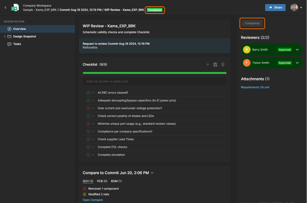 No more time wasted chasing missing feedback. Real-time visibility into collaborator input highlights what needs attention and helps you track progress and prepare for audits. Focus the power of your peer network on design reviews.