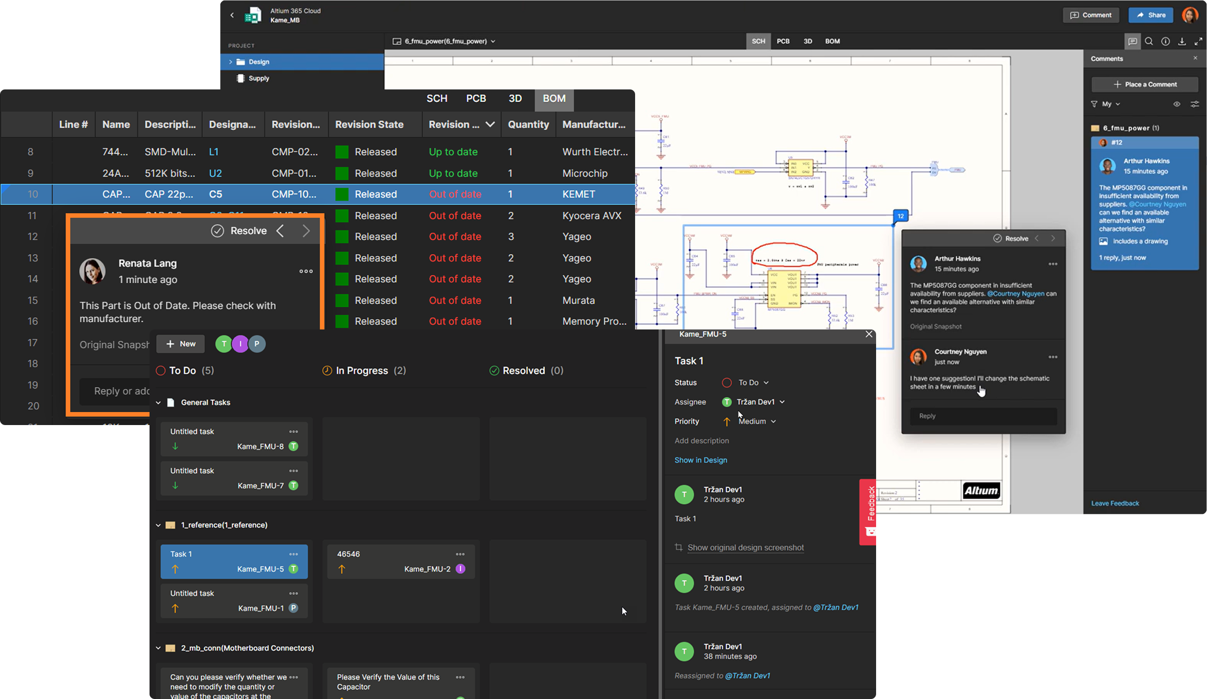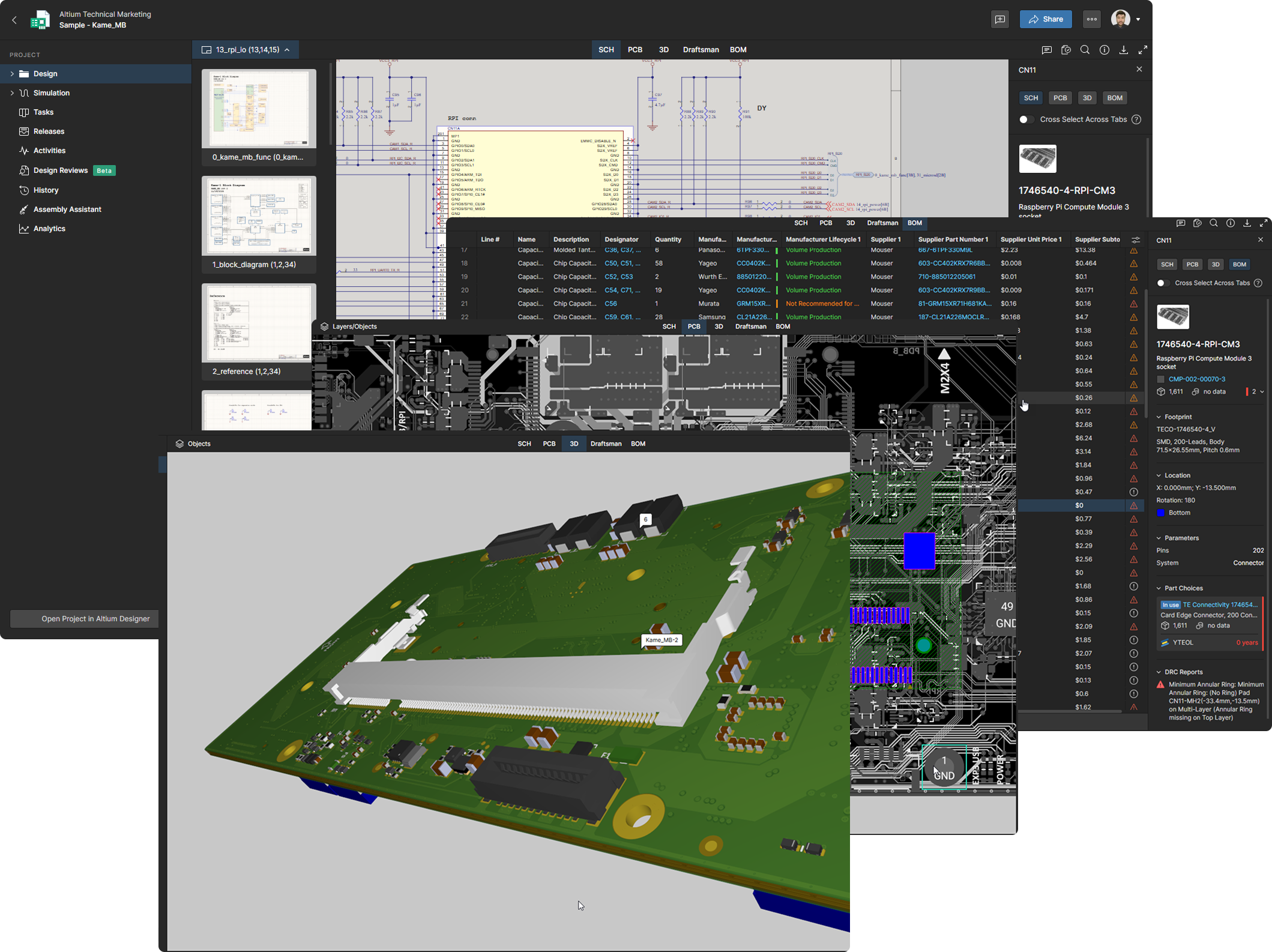 Consolidate mixed-format projects in a single cloud vault. Engineers have instant access to shared schematics, layouts, and BOMs, supported by built-in version control.